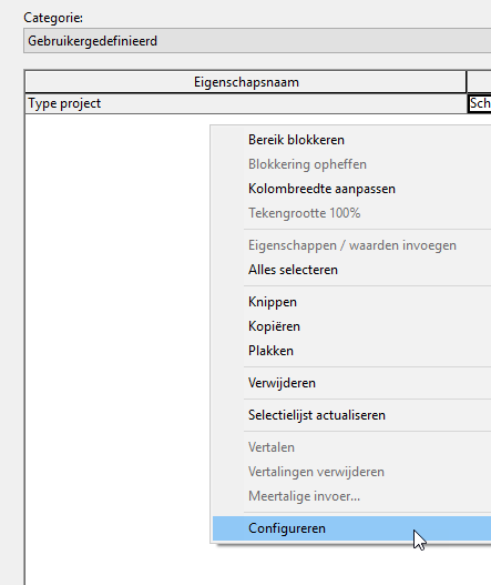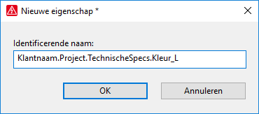 Ga naar projectgegevens en kies voor ‘Eigenschappen configureren’. Vul vervolgens een identificerende naam in, hiervoor gebruikt u best een vaste structuur: ‘Klantnaam.Project.TechnischeSpecs.Kleur_L’.