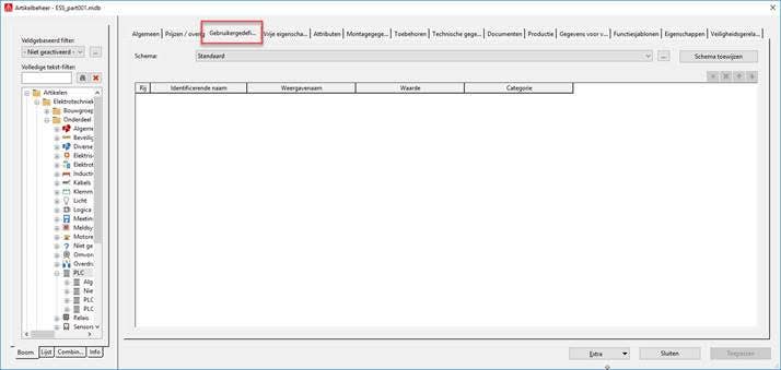 Kiest u voor de ‘gebruiker extra velden’? Dan kunt u de nieuwe eigenschap wel een specifieke naam geven, wat dat betreft zijn deze dus ideaal om klantgerichte eigenschappen mee aan te maken. Het nadeel is echter dat er een limiet van 100 extra velden is per niveau (project/pagina/functie …) en de eigenschappen komen automatisch onder het Eplan hoofdknooppunt in uw boomstructuur te staan.