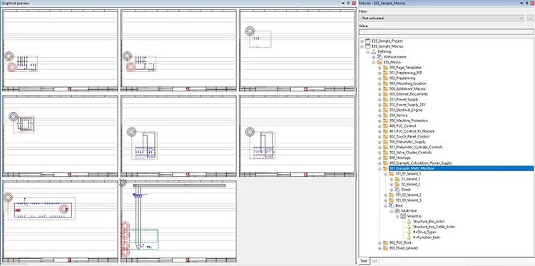 Met macro’s voorkomt u dat u elke keer weer het wiel opnieuw uitvindt. U legt namelijk één keer vast welke artikelen nodig zijn voor bijvoorbeeld een motorstarter, en hoeft daar vervolgens nooit meer over na te denken. U kunt ook varianten maken, bijvoorbeeld motorstarters met verschillend vermogen. Als dat eenmaal is ingeregeld is het een kwestie van de motorstarter-bouwsteen naar uw project slepen en de variant selecteren. Eplan plaatst de juiste artikelen. Dat bespaart veel tijd.