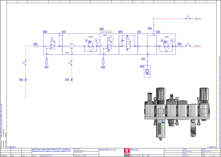 Com a Plataforma Eplan 2026, o portfólio fica mais integrado na prática. Um bom exemplo é que a solução EPLAN Fluid agora passa a fazer parte do EPLAN Electric P8 como a função “Fluid Power Engineering”.