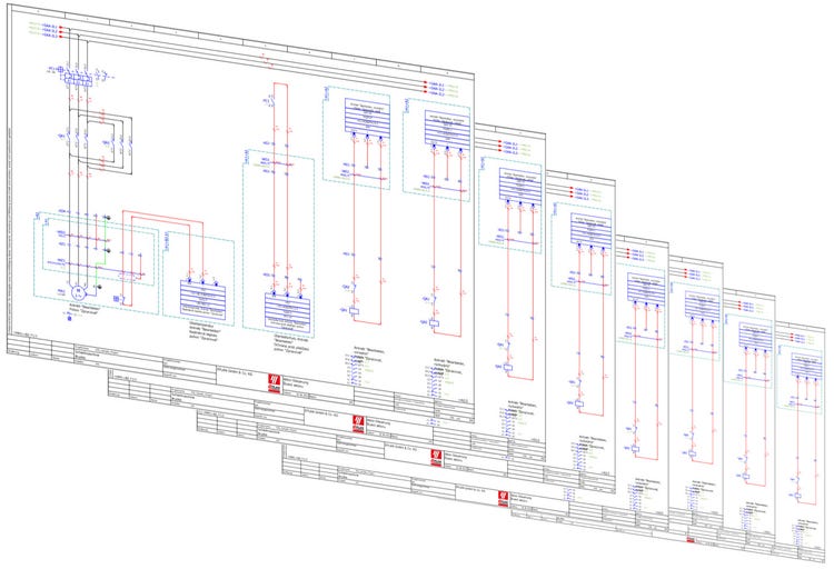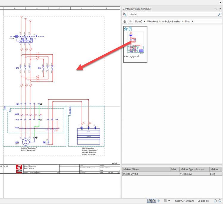 Makrem je v Eplan myšlen výřez ze schémat, nebo i celé části projektu, které jsou uloženy pro pozdější použití. Lze si tedy připravit makra pro opakované části zapojení od nejmenších, které obsahují pouze konkrétní přístroje (frekvenční měniče, PLC, senzory…) přes části zapojení jako motorový vývod či měřicí smyčku, až po vícestránková schémata obsahující hlavní přívod, rozvod DC napájení, servisní zásuvky, osvětlení… Prostě vše, co se v projektech opakuje. A na co bychom obvykle použili metodu kopírovat – vložit.