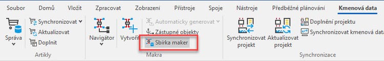 Pokud by makro ve sbírce nebylo – lze spustit synchronizaci složek s makry pomocí Kmenová data > Makra > Sbírka maker.