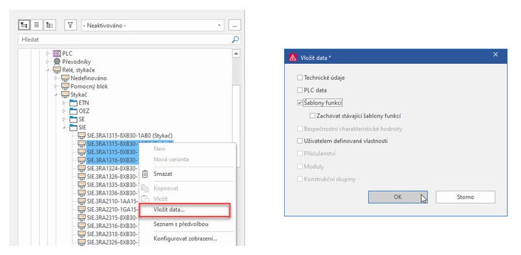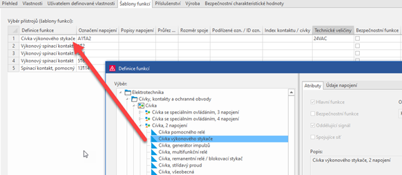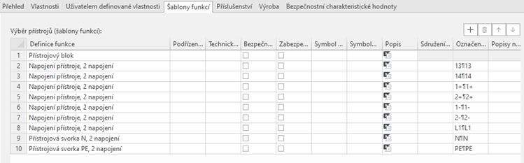 Máme zadaná základní data nového artiklu, nadefinovali jsme číslo artiklu, typové označení, objednací číslo, popis, rozměry a další potřebné údaje. Abychom mohli takto nadefinovaný přístroj použít v projektu a umístit jej do schématu, je zapotřebí nadefinovat šablonu funkce. Způsob definování šablony funkce se může lišit v závislosti na typu přístroje. Je rozdíl, zda se jedná o jednoduché zařízení jako např. jistič, stykač, motor, anebo komplexní zařízení s více připojovacími svorkami, jako jsou zdroje napájení, frekvenční měniče nebo PLC karty.