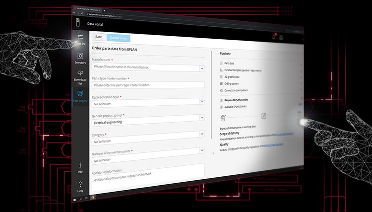 Jednoduché vstupní dialogové okno v Eplan Data Portal pomáhá konstruktérům rychle si vyžádat potřebná data.