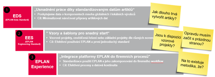 Třetí úroveň, v jejímž rámci poskytujeme zákazníkům data, je Eplan Experience. V tomto případě se už jedná o opravdovou zákaznickou customizaci. O nastavení dat a postupů tak, aby odpovídaly a navazovaly na procesy v dané společnosti. Eplan Experience nepokrývá jen surová data, ale tvoří metodiku práce uzpůsobenou konkrétní společnosti, reflektující nejen elektro oddělení, ale datový tok a proces napříč celou firmou.