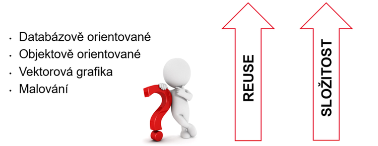 Samotný software se samozřejmě také liší možnostmi, které nabízí. Od nejjednodušších „kreslítek“, přes vektorové editory pracující s bloky až po databázově orientované systémy. S tím, jak se zvyšuje komplexnost objektů, s nimiž daný software pracuje, se zvyšují i nároky na jejich přípravu, a ta je složitější a zabírá více času.