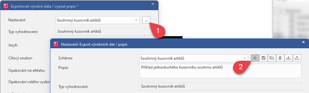 V následujícím dialogu nalezneme několik připravených výstupů, my si ale vytvoříme schéma vlastní. Takže začneme výběrem tlačítka se třemi tečkami vedle výběru schéma a následně ikonu „+“ - nové schéma.
