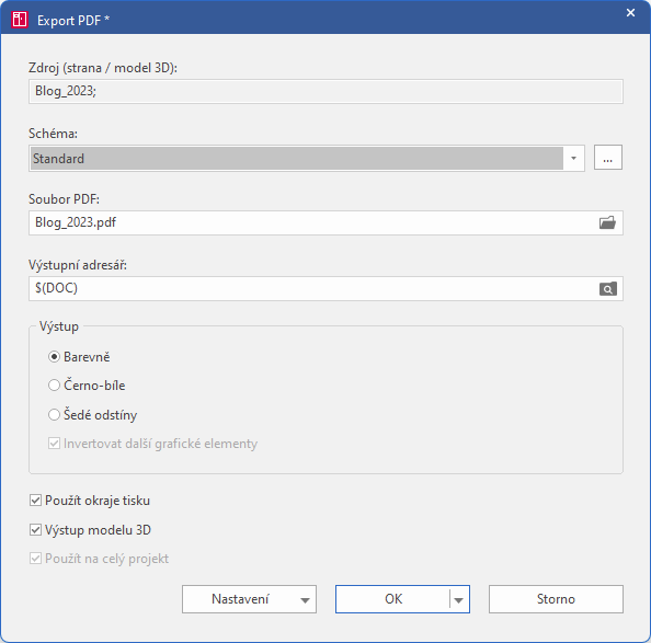 Jak exportovat projekt do PDF