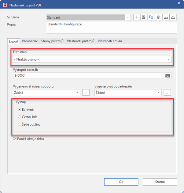První je filtr stran. Lze si například vytvořit dvě schémata (tlačítko „+“ vlevo nahoře), kdy jedno bude používat filtr, který vyjme strany, které jsou určeny jen pro výrobu, a druhé bude kompletní.