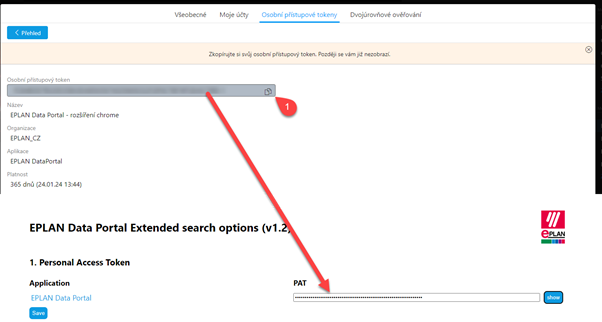 Zde je nutné vyplnit tzv. PAT token – pomocí něj rozšíření použije správný účet na Eplan Cloud. A právě tam, v Eplan Cloud, je třeba tento token vytvořit.
