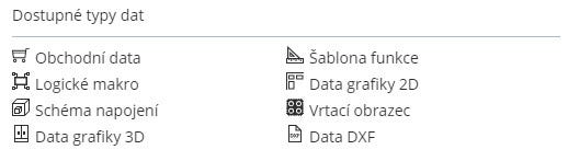 Po nalezení artiklu jsou u něj v detailu vidět (kromě obchodních informací, potvrzujících, že jde skutečně o artikl, který jsme hledali) také typy dat. Ty nám říkají, co artikl obsahuje, až ho stáhneme.