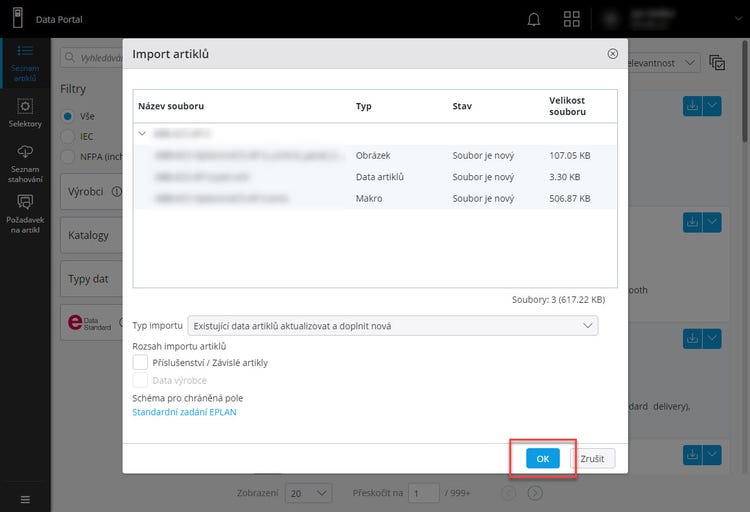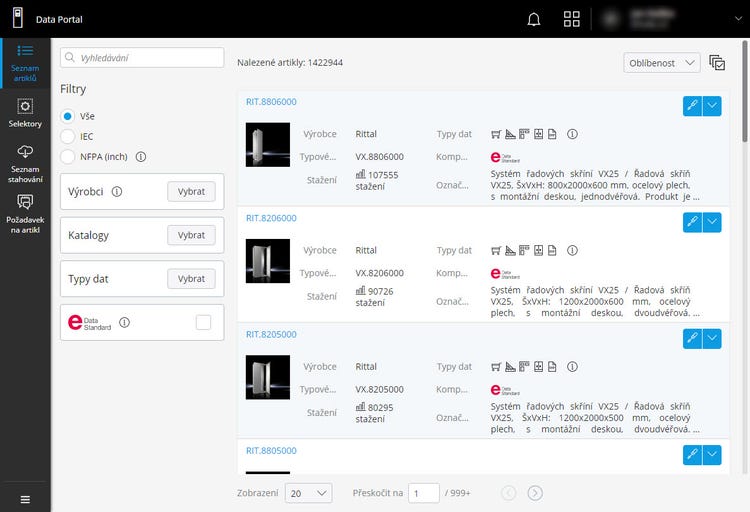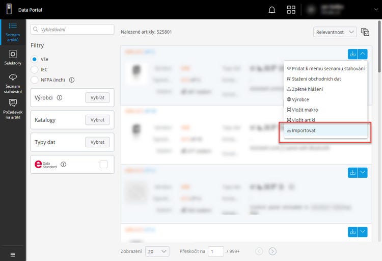 TIP: Mezi filtry lze aktivovat pole Eplan Data Standard. Toto je certifikace artiklů, zajišťující, že jsou vytvořeny podle Eplan pravidel, mají vyplněny požadované údaje v daném formátu a jsou v nejvyšší kvalitě.