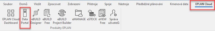Eplan Data Portal najdete, stejně jako další cloudové aplikace, v kartě Eplan Cloud: