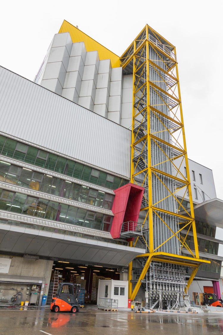 Die Produktionsanlage von Sto in Stühlingen mit Blick auf die Rohstoffannahme und den Siloturm.