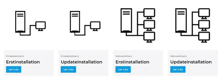 Für die Erstinstallation einer Einzelplatzlizenz sind zum Beispiel folgende Inhalte verfügbar: Hard- und Softwarevoraussetzungen, videogestützte Hilfestellungen zur Installation, dem ersten Start und den ersten Schritten mit der Software sowie wichtige Zusatzinformationen.