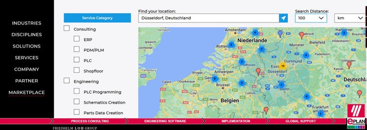 Viele Anbieter sind Kunden von Eplan, weiß Christian Klaus. Sie arbeiten seit vielen Jahren mit den Eplan Lösungen und kennen daher die jeweiligen Anforderungen und Vorteile bestens. Neben kleinen und mittelständischen Unternehmen finden sich namhafte Technologiedienstleister sowie Unternehmen aus dem Maschinen- und Anlagenbau. Ihre jeweilige Eplan Expertise müssen die Anbieter nachweisen, bevor sie auf der Plattform freigeschaltet werden, so Klaus weiter. Manche Anbieter gehören außerdem zum Eplan Partner Network.