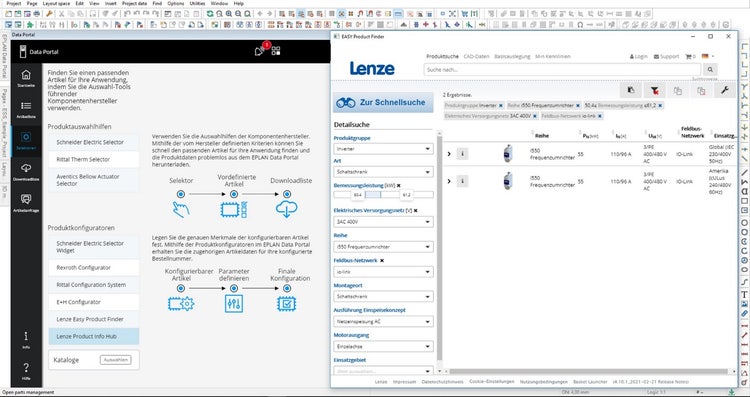 Auch individuelle Lösungen auf Basis von Konfiguratoren lassen sich intuitiv generieren – wie der Produktkonfigurator von Lenze zeigt. Bernd Spiegel, Leiter Team Processes and Data bei Lenze, erklärt: „Durch die direkte Anbindung unseres Produktkonfigurators an die neue Eplan Plattform findet der Kunde sehr schnell sein gewünschtes Produkt. Es entfällt die Artikelsuche in umfangreichen Listen und der Kunde bekommt einen für seine Anforderungen passenden Artikel."