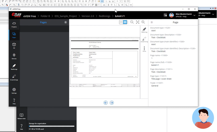 Auch die Projektabstimmung mit internen wie externen Stakeholdern in Eplan eView Free wird durch eManage unterstützt: Ein Klick genügt, um ein Abbild der Projekte aus eManage in eView zu publizieren und so bei Bedarf direkt in die Projektabstimmung per Red- und Greenlining einzusteigen.