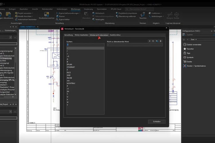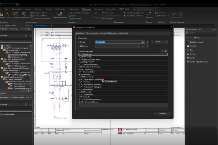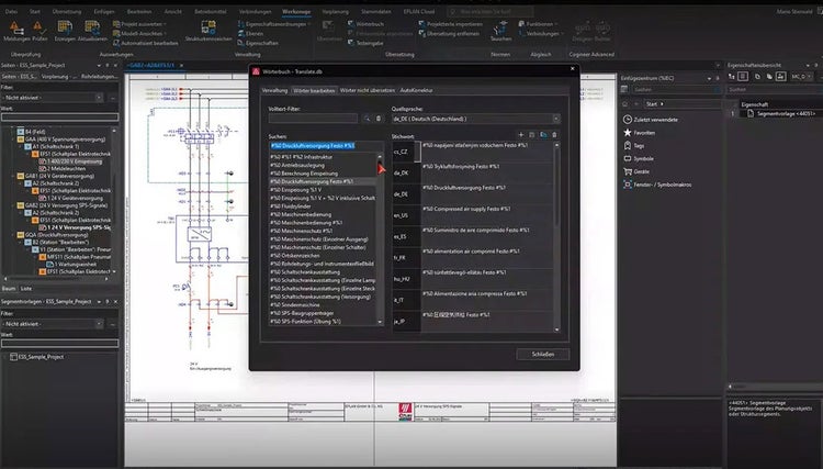 Eplan Wörterbuch: Projekttexte und Beschriftungen automatisch im Schaltplan übersetzen