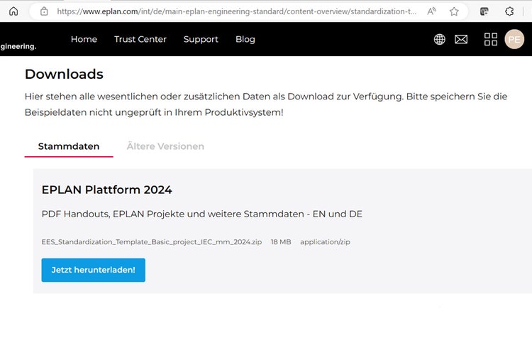 Oder Sie gehen auf www.eplan.com und scrollen zu den Eplan Services. Hier finden Sie den Eplan Engineering Standard, kurz: EES. Dieser bietet Ihnen verschiedene Downloads. Darunter das „Basisprojekt für IEC“. Das Basisprojekt bietet Ihnen universelle Vorlagen mit vordefinierten Auswertungen und Einstellungen, mit denen Sie Projekte nach IEC-Norm aufsetzen können.