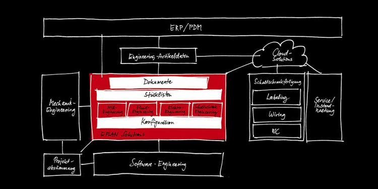 Für die notwendige Transparenz und Effizienz sorgt mit ihren flexiblen Integrationen für ERP, PDM und PLM die Eplan Integration Suite. Eine Übersicht über die verfügbaren Systemanbindungen finden Sie auf unserer Webseite.