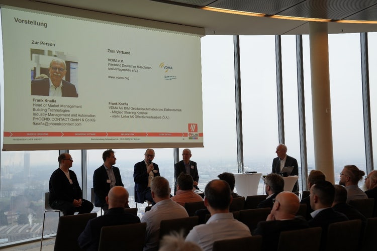 Auch Veranstaltungen tragen als Netzwerktreffen für die Gebäudetechnik einen wichtigen Teil dazu bei, gemeinsame Lösungsansätze zu erarbeiten und durchgängige Systeme zu schaffen. Der diesjährige „Branchendialog: Gebäudetechnik“ gab Vertretern mehrerer Verbände eine Plattform, um Ihre Arbeiten für die Branche vorzustellen und zum Gedankenaustausch anzuregen. Vertreten waren Jürgen Hardkop für den AMEV, Frank Knafla für den VDMA, Oliver Lebherz für buildingSMART (bSI) und Dr. Tristan Funken für den IDTA.