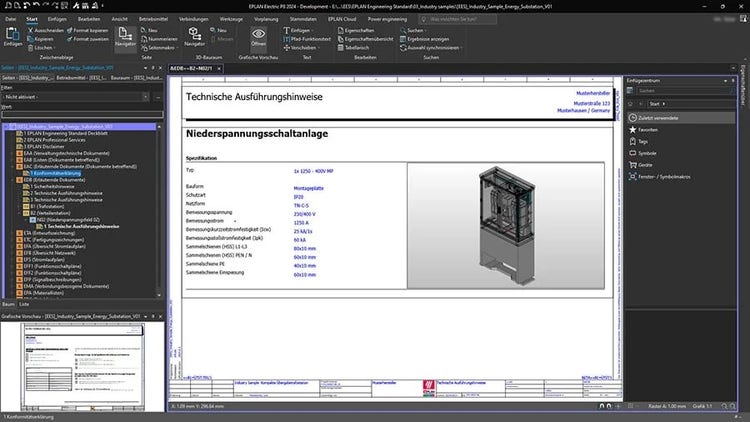 Die elektrotechnische Planung der Automatisierung folgt klassisch anderen Grundsätzen als die der Energiewirtschaft. Damit Konstrukteure und Planer hier optimal unterstützt werden, haben die Experten von Eplan gemeinsam mit Kunden ein Standard-Industrieprojekt „vorgedacht“, die den Energiesektor adressiert. Konkret geht es um das Engineering einer Trafostation mit Mittel- und Niederspannungssystem, das als Projekt in der Eplan Cloud verfügbar gemacht wird. In der Praxis lassen sich damit Verteilerstationen, Einspeisestationen oder gemischte Anlagen planen. Auch Speichersysteme im Sektor Erneuerbare Energien können auf dieser Basis geplant werden.
