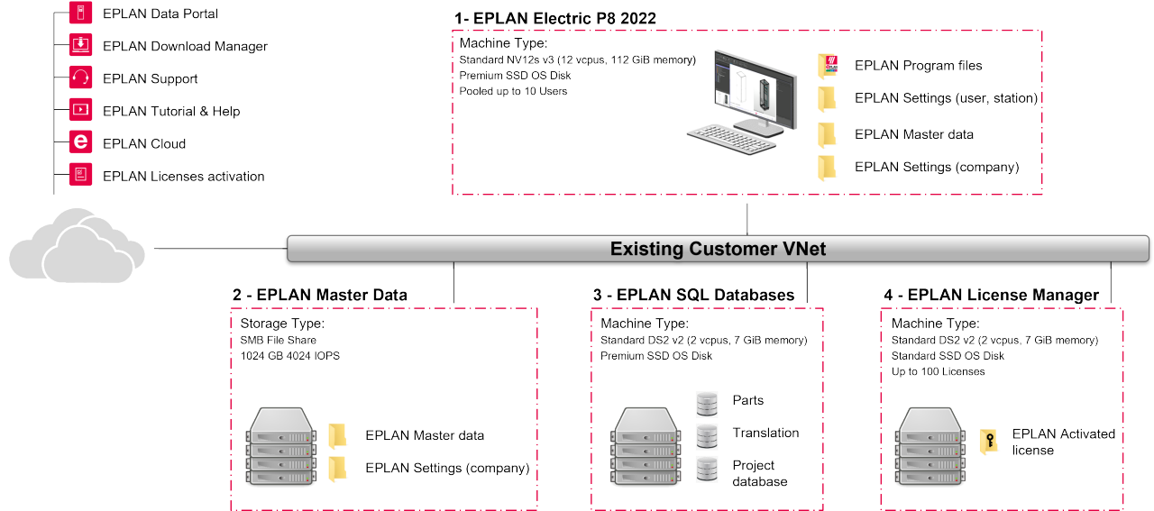 We at EPLAN would like to make the roll-out of your EPLAN software to your company's own cloud infrastructure in Microsoft Azure as easy as possible for you. The operation of your cloud infrastructure and EPLAN software remains in your hands.