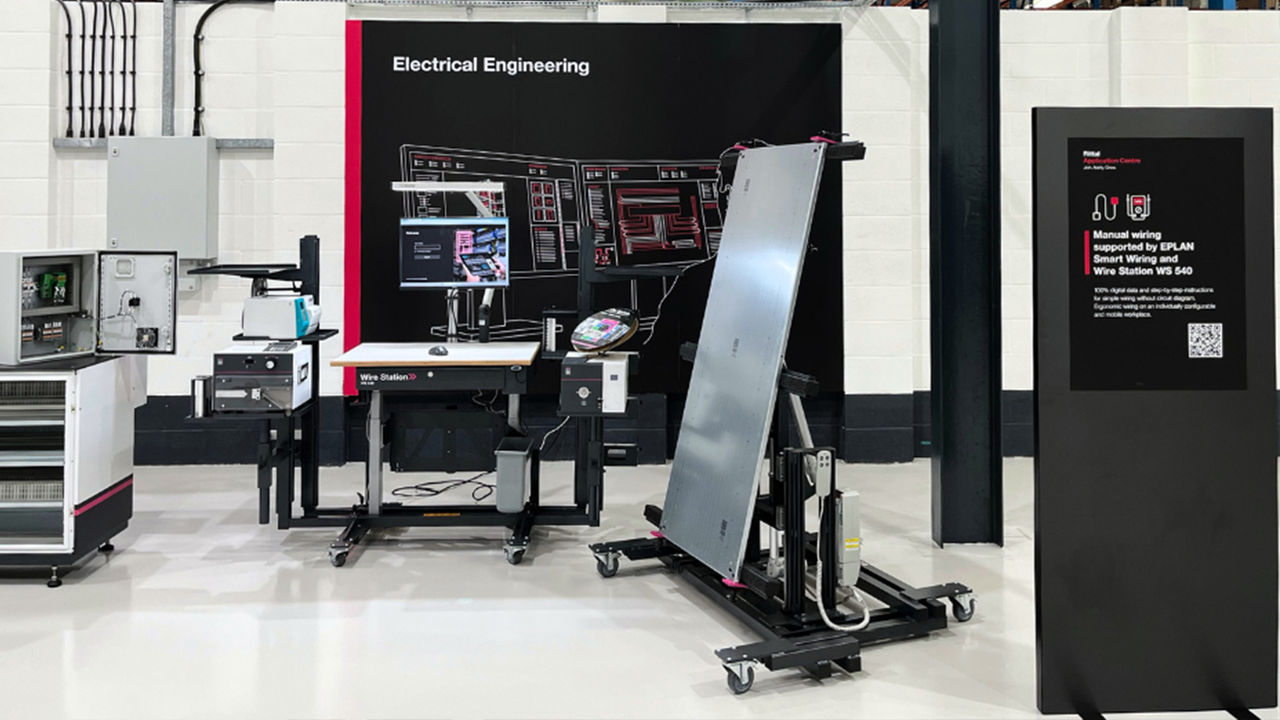 At the Application Centre, you'll get to see the seamless interaction between Eplan and Rittal tools. You'll see how improvements can be made along the value chain, for example how better data flow can have wide-reaching benefits to efficiency, productivity and cost reduction. Utilising Rittal and Eplan's unique relationship, data can flow through the Eplan Platform, from planning, schematic creation in Eplan Electric P8, 3D design and digital twins in Eplan Pro Panel, with validated data for electrical components from the Eplan Data Portal. Data then moves into the Rittal system configurators to allow you to configure the enclosures and accessories with plausibility-check and in 3D - ready for handing over the data to mechanical or manual further processing.