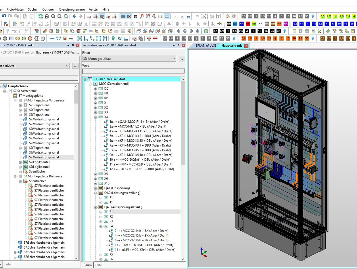 - The control cabinet is designed in Eplan Pro Panel based on the schematics data from EPLAN Electric P8. The 3D model can also be used to derive the automated milling and manufacturing data for the individual cabling assembly. Image source: KBB