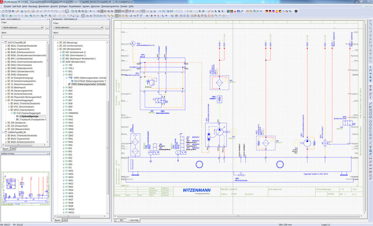 This makes the company a specialist in providing assemblies requiring the manufacture of flexible components. Witzenmann uses Eplan Electric P8, currently Version 2.5, for the electrical engineering of all it’s machines. The Eplan Pro Panel solution has also been installed at Pforzheim for control cabinet engineering and the Eplan Fluid software for fluid power engineering.
