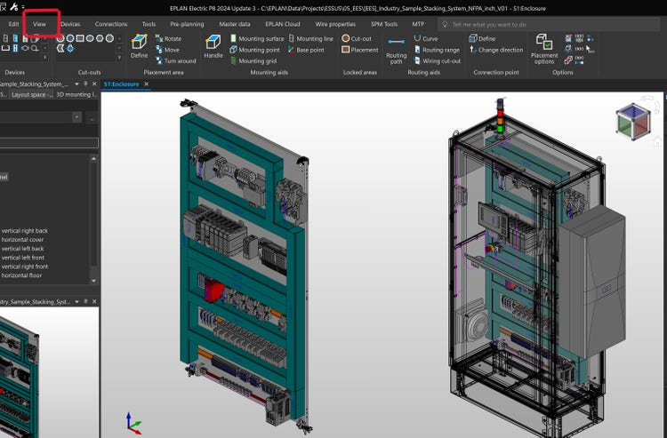 The 3D control cabinet design, a number of software optimizations and enhancements have been added in the Eplan version 2024. Until now, it was only possible to change the views of the installation space or the view of the 3D model of the control cabinet in Eplan Pro Panel by means of commands in the status bar or by means of a key combination.