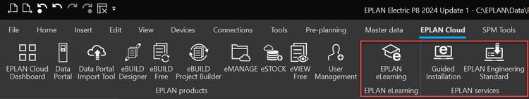 In version 2024, the useful examples and templates of the Eplan Engineering Standard can be accessed directly from the software via the Eplan Cloud tab. In this way, the designer can find support much faster and without detours, which he can immediately use for his work - for example, standardization templates, application examples and best practices. The online training courses of the Eplan eLearning library as well as the software installation aids of the Guided Installation can also be accessed quickly in this way.